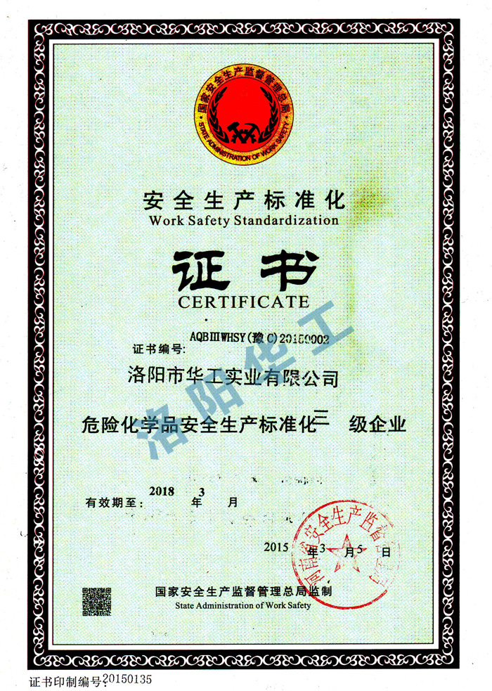 安全生產(chǎn)標(biāo)準(zhǔn)化證書(shū)